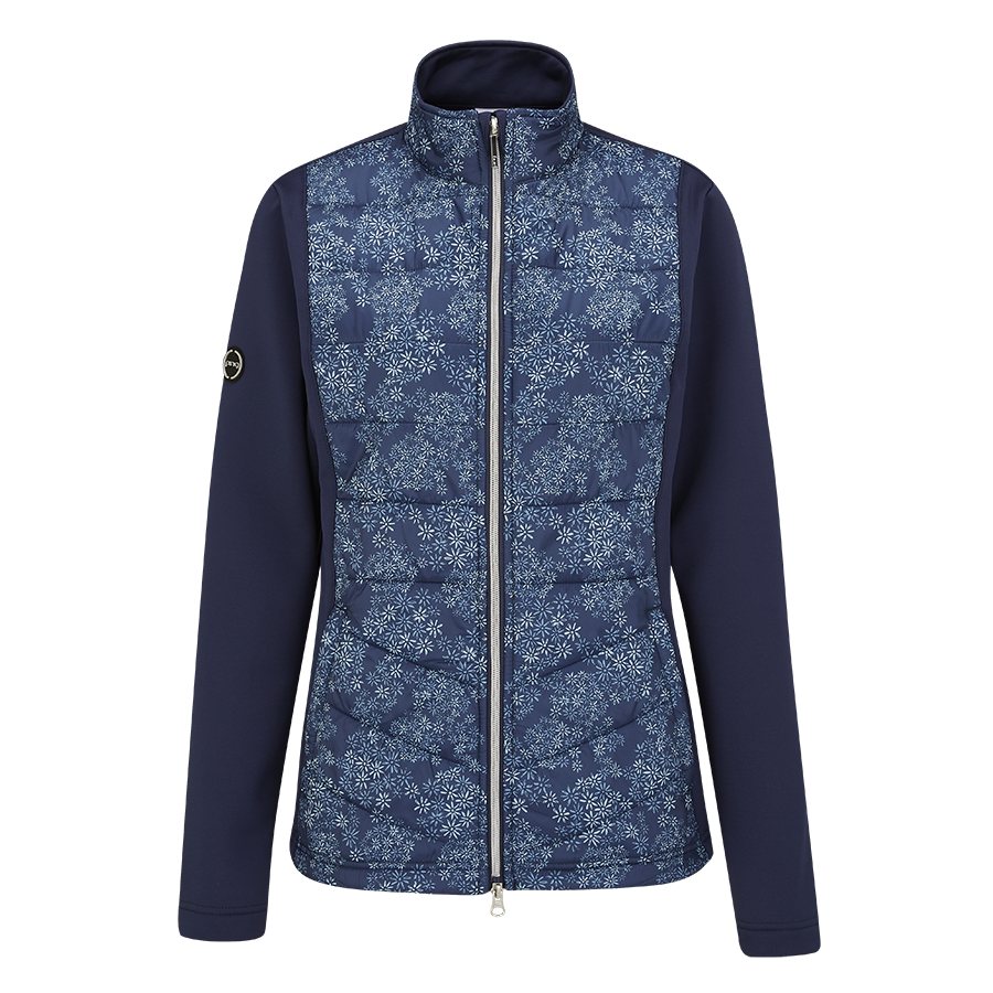 Bedruckte Hybridjacke, die für Wärme bei kaltem Wetter entwickelt wurde.