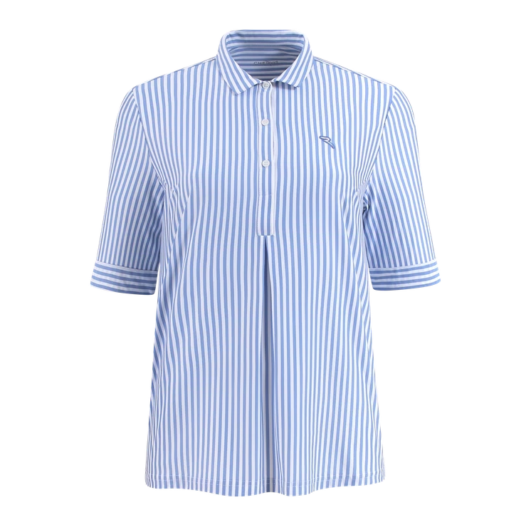 Damen-Poloshirt aus gestreiftem Dry-Matic-Stretch-Jersey-Oxford-Stoff für alle Jahreszeiten. Das Modell bietet unvergleichliche Atmungsaktivität und sorgt dank der Struktur des Polyamidgarns und der speziellen Dry-Matic-Behandlung, die schnelltrocknende Eigenschaften verleiht, für ständige Frische. Antibakterielle Behandlung. Übergroßes Hemd im 3/4-Stil mit umgeschlagenen Ärmeln und weit ausgestellten Seiten dank der Abnäher auf Vorder- und Rückseite. Am Kragen befinden sich kleine, individuell gestaltete Knöpfe. Die Neuauflage eines zeitlosen Klassikers.