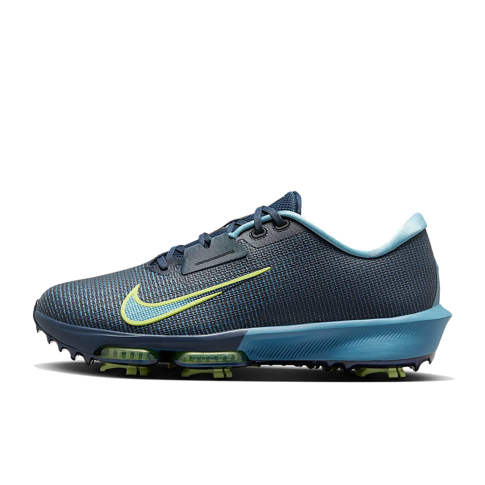 Wir haben zwei weitere integrierte Spikes im Vorfußbereich hinzugefügt, sodass nun insgesamt sechs Spikes für hervorragenden Grip sorgen. Die Spikes sind unter der Air Zoom-Einheit platziert, um eine bessere Energierückgabe und zusätzlichen Komfort während der gesamten Runde zu gewährleisten.