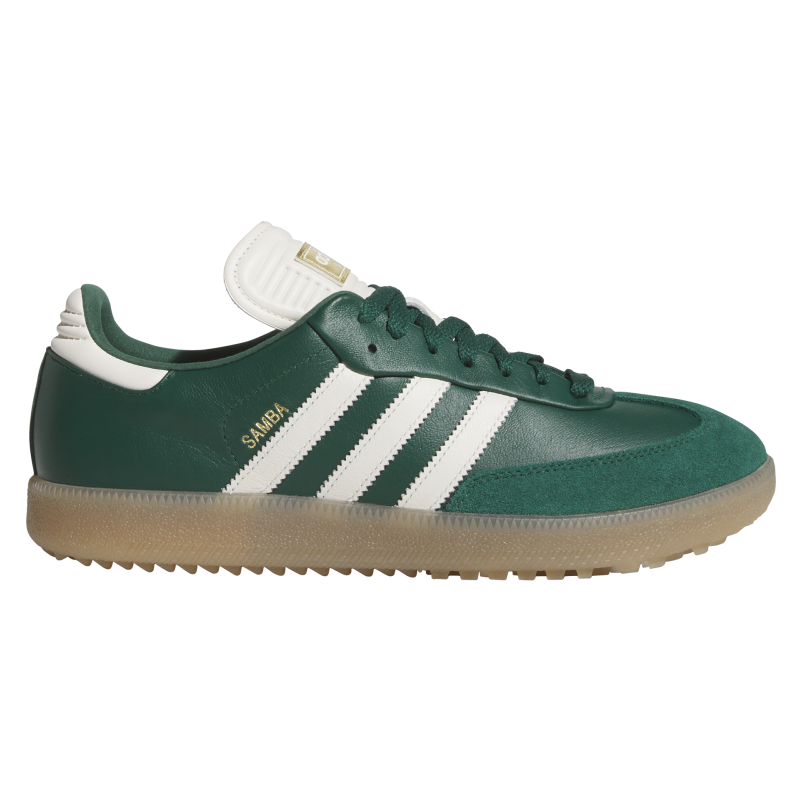 Bringen Sie mit diesen adidas Samba Golf-Sneakers eine Portion originellen Stil in Ihre nächste Runde. Sie behalten den traditionellen Look des Originalmodells bei, haben ein Obermaterial aus Leder mit Wildlederdetails und verfügen über die ikonische gepunktete Zehenpartie. Sie verfügen über eine dämpfende Zwischensohle und eine Gummilaufsohle, die Ihnen auf dem Platz zuverlässigen Halt bietet, sodass Sie alle 18 Löcher bequem spielen und dann zum Club gehen können.